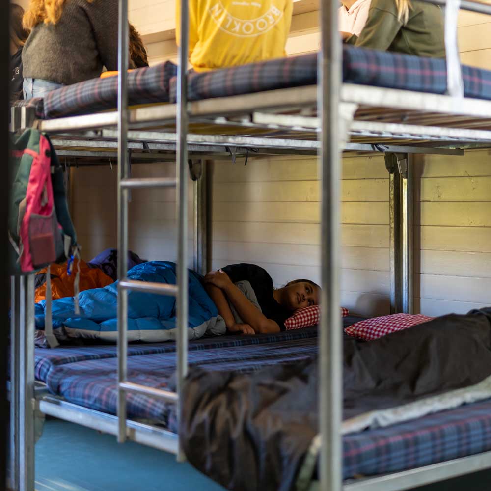 Geniesst einen erholsamen Schlaf in unseren neun verschieden grossen Massenschläge. Hier bieten wir eine komfortable Umgebung für eine entspannte Nachtruhe.