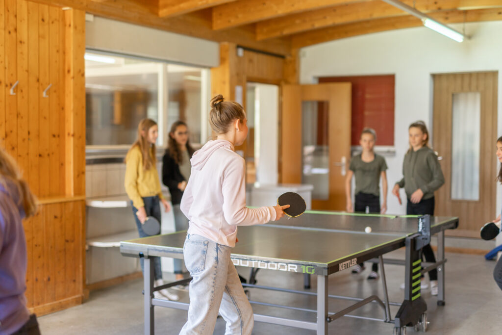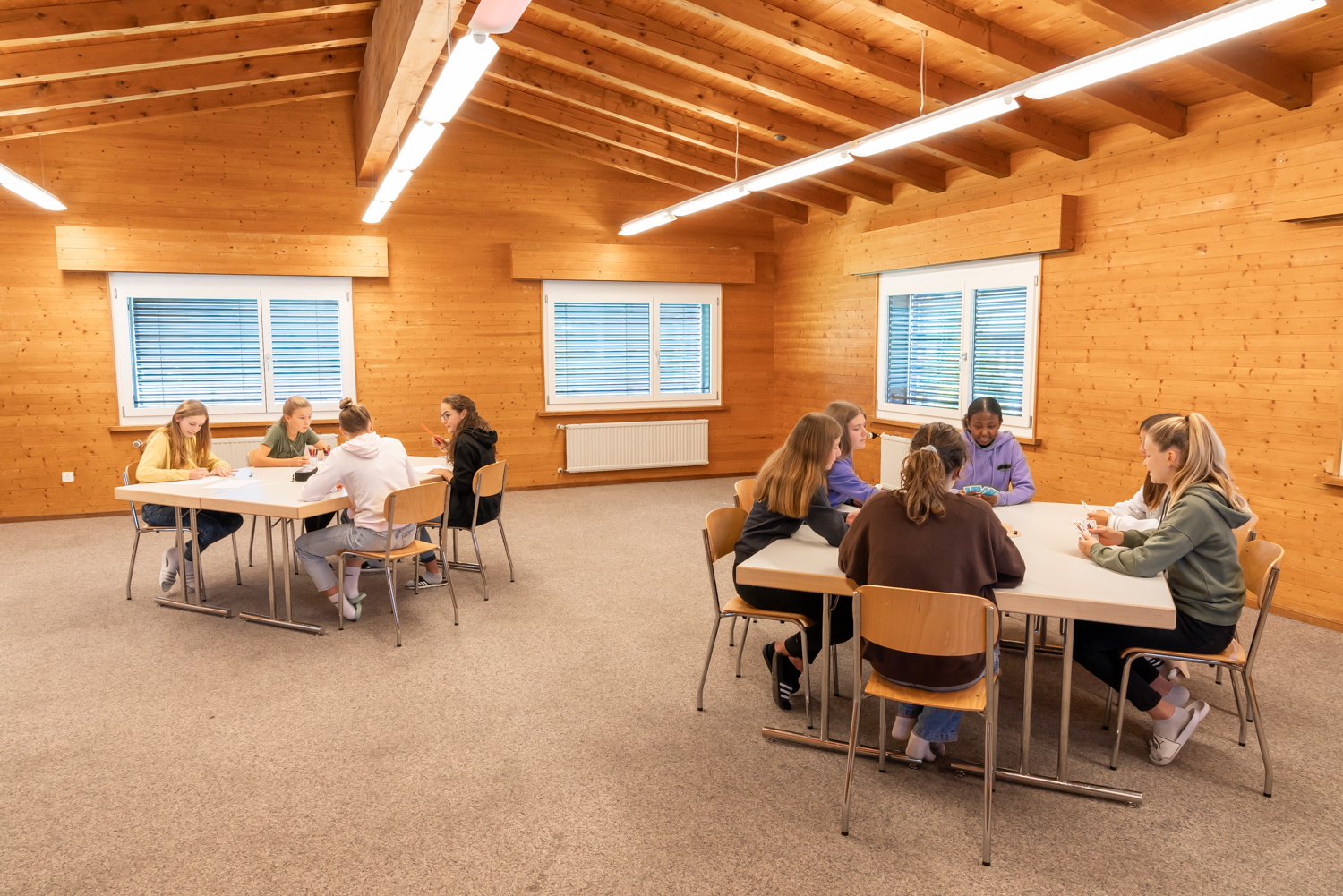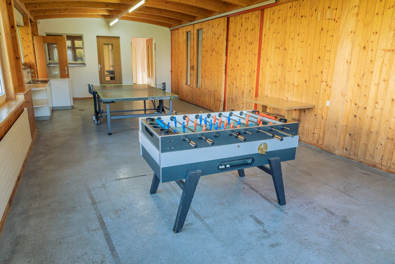 Unser geräumiger und vielseitig nutzbarer Aufenthaltsraum lädt zu Gruppenaktivitäten, Spielen oder entspanntem Beisammensein ein.